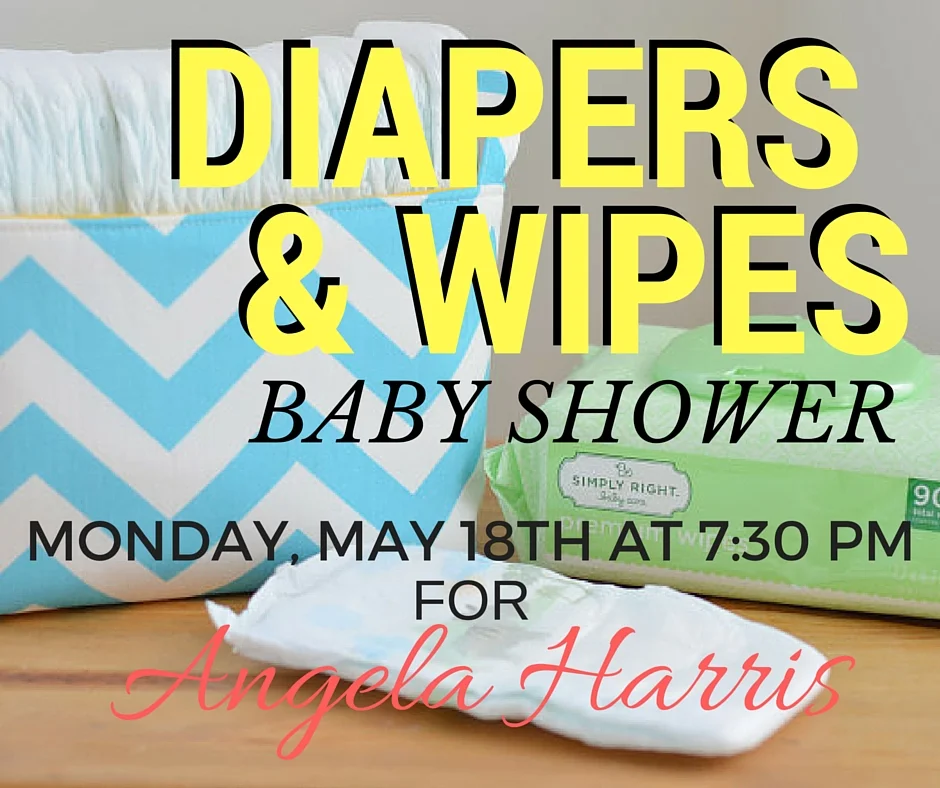 Diaper and Wipes Baby Shower Monday, July 18, 2016 7:30 PM 8:30 PM 19:30 20:30 Google Calendar ICS We will be having a “Diapers and Wipes Shower” for Angela Harris in the Fusion Center at 7:30 PM. Please come out to support her and her new baby girl that will be arriving soon. She is mostly in need of size 2 and 3 diapers.