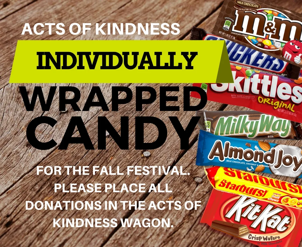 The Fall Festival is coming up soon! We are asking for the families of Living Word to start bringing in individually wrappedcandy and place it in the Wagon in the foyer.
