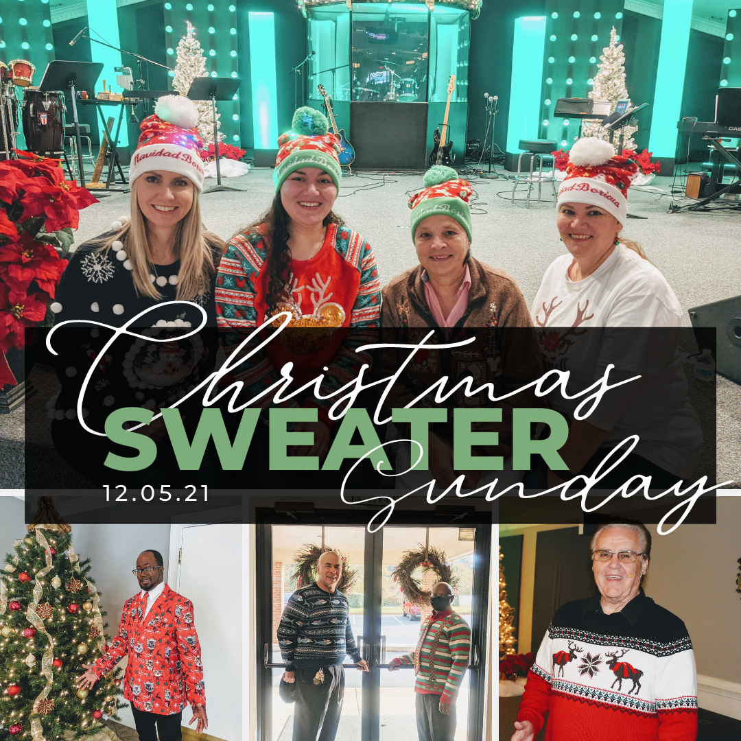 Christmas Sweater Sunday! Show some Christmas spirit by wearing your favorite sweater to church this Sunday morning.