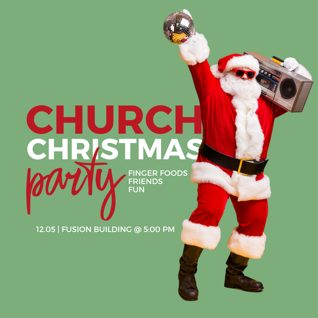 Everyone is invited to come celebrate the season with food, fun, and festive games at our Churchwide Christmas Party! The party starts at 5:00 PM in the Fusion building. Bring a finger food and a friend (or five) and be prepared to have a great time!