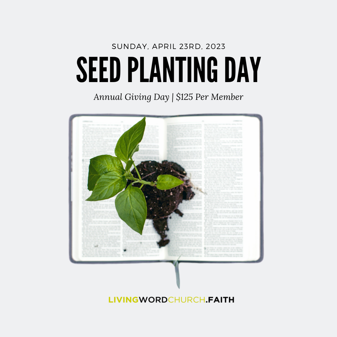 Sunday, April 23rd: Seed Planting Day. We will be receiving an offering to go towards ceiling lights in the ark. Let’s have a goal for each member to give $125 or more.